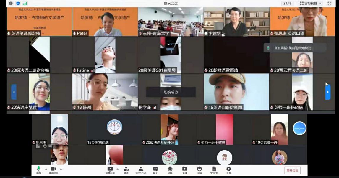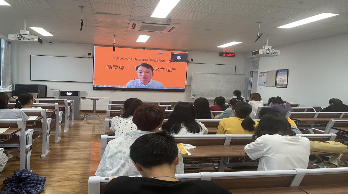 2021年7月13日下午,闽南师范大学副董事长张龙海教授为太阳集团城8722师生做了题为“哈罗德·布鲁姆的文学遗产”的线上讲座。讲座由副经理宫英瑞教授主持,讲座开始,经理卞建华教授对张教授及此次讲座进行了介绍,三百多位师生线上线下同时参会。