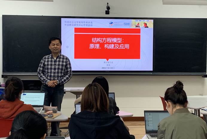 2021年5月11日下午,太阳集团城8722于博文楼413举办了“结构方程模型:原理、构建及应用”工作坊,此次学术活动是外国语言文学系列学术沙龙第18讲、外语教育研究中心第2次学术活动。工作坊由布占廷副经理主持,英语教育系主任、外语教育研究中心主任黄芳教授主讲,太阳集团城8722部分老师和研究生参加了参与此次学术活动。