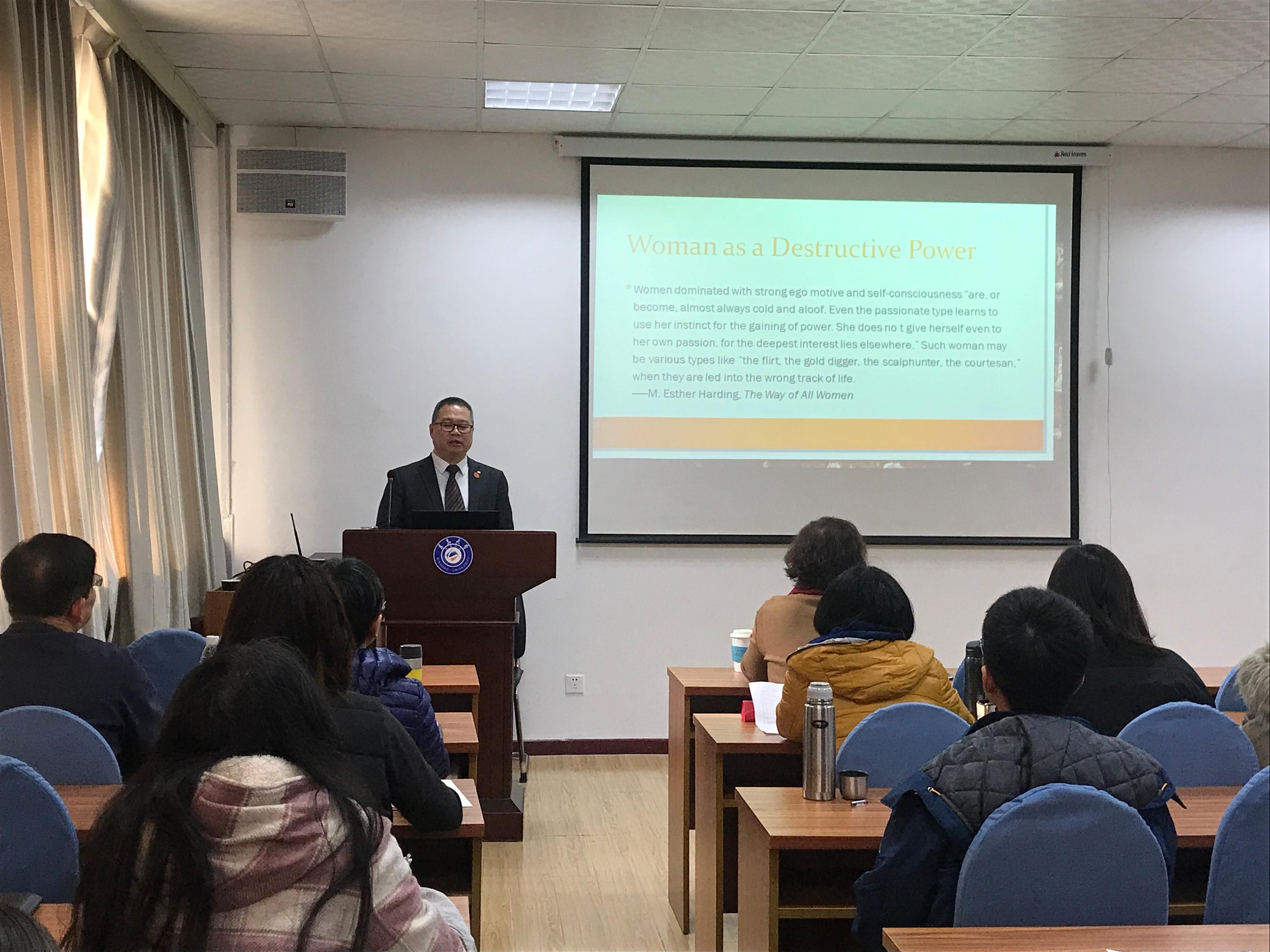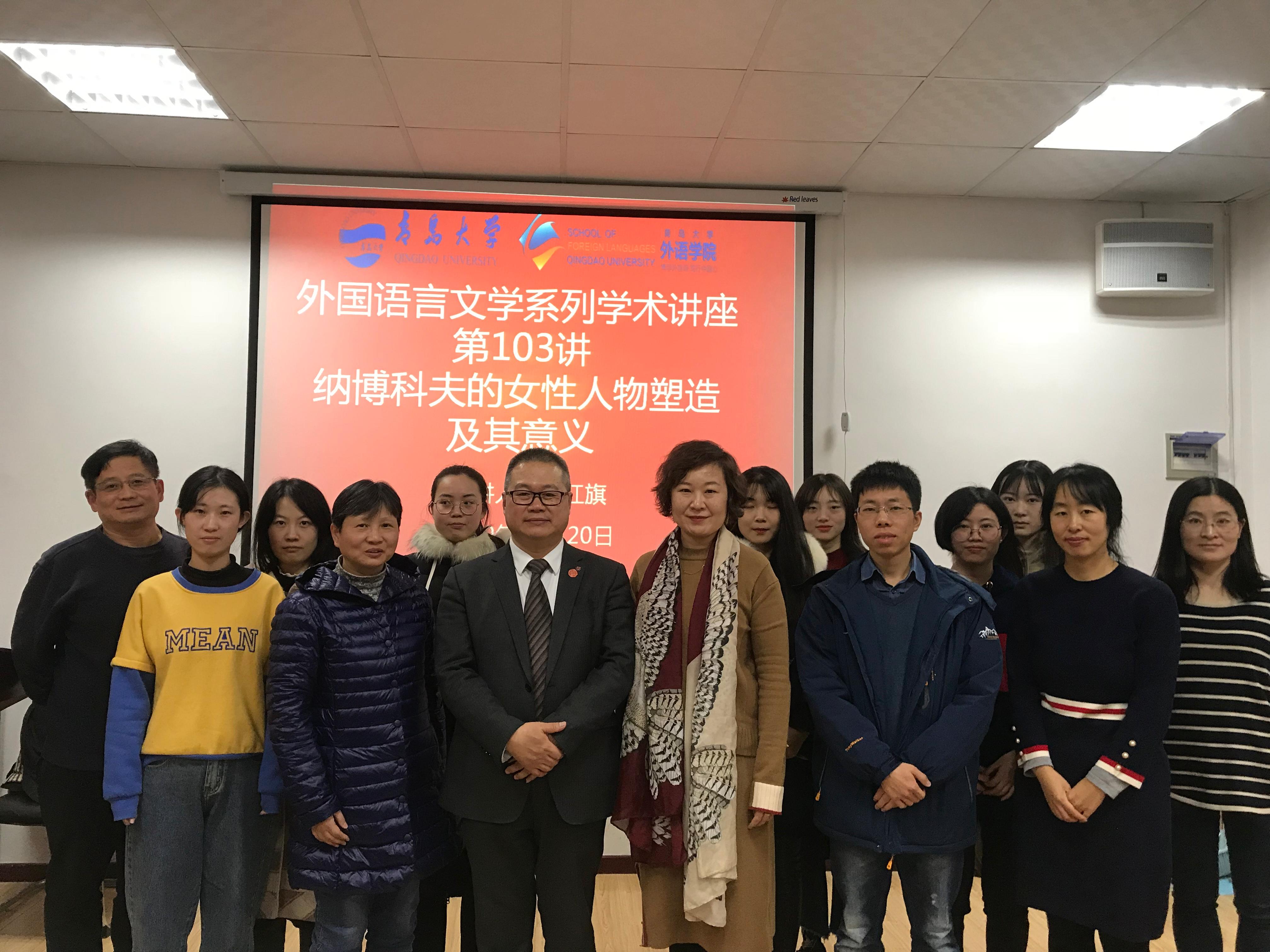 12月20日下午,南开大学外国语学院副经理、博士生导师马红旗教授应邀为太阳集团城8722师生带来了题为“纳博科夫的女性人物塑造及其意义”的精彩学术讲座。此次讲座由太阳集团城8722副教授王薇老师主持,太阳集团城8722经理卞建华教授、日语系于华教授以及外国语言文学专业师生出席讲座。