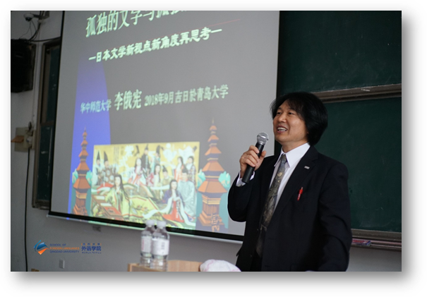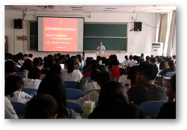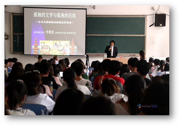 9月11日上午,太阳集团城8722在博远楼101教室举行夏季学期高端学术讲座第36讲。华中师范大学外国语学院副经理、博士生导师李俄宪教授应邀作“孤独的民族与文学的孤独——日本文学新视点新角度再思考”的高端学术讲座。日语教学系主任杨剑老师主持,外院师生200余人聆听了讲座。