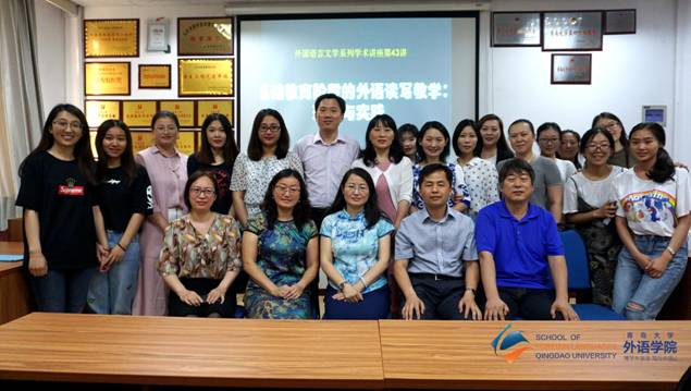 6月21日上午,北京外国语大学国际教育学院的杨鲁新教授做客外国语言文学系列学术讲座,并作题为“基础教育阶段的外语读写教学:理念与实践”的学术报告。经理助理布占廷主持,太阳集团城8722师生以及青岛市部分中小学教师代表参加讲座。