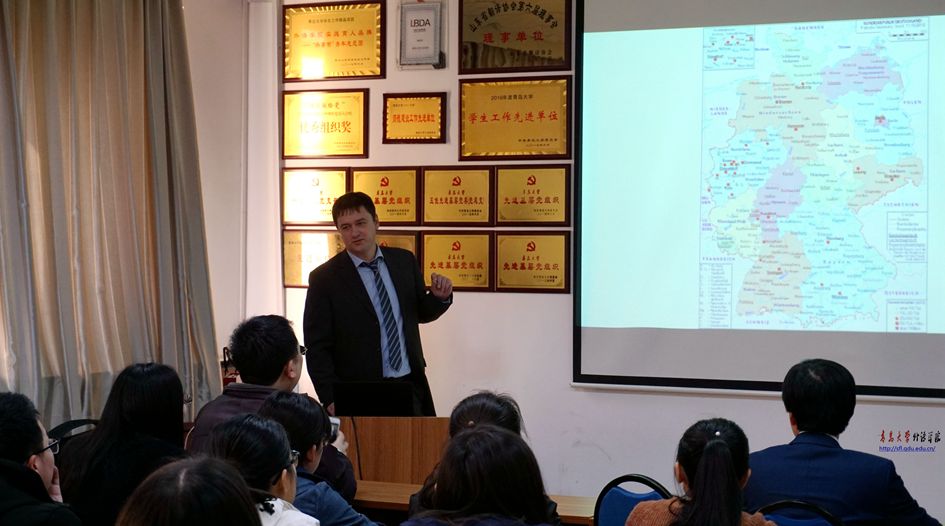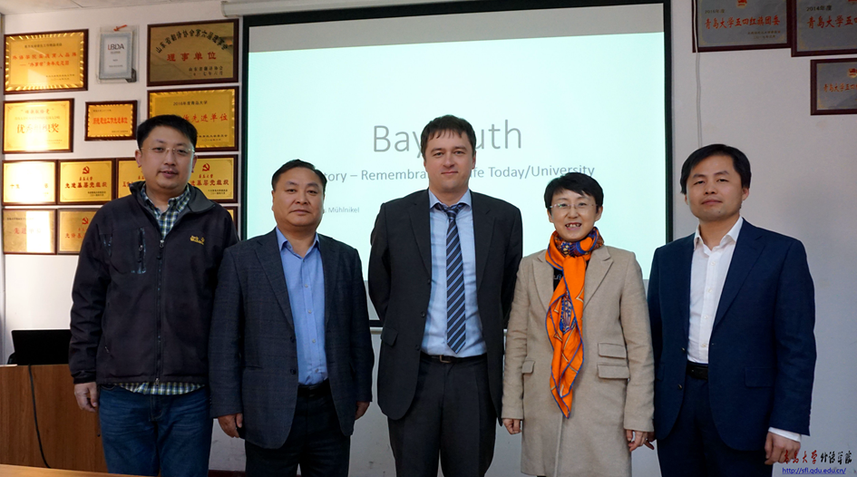 3月30日,德国拜罗伊特大学马库斯•慕尔尼克博士应邀做客外国语言文学系列学术讲座第33讲,并作《法兰肯区的拜罗伊特市——不只是边疆女伯爵威廉娜和音乐家瓦格纳》专题学术报告。经理助理布占廷主持讲座。