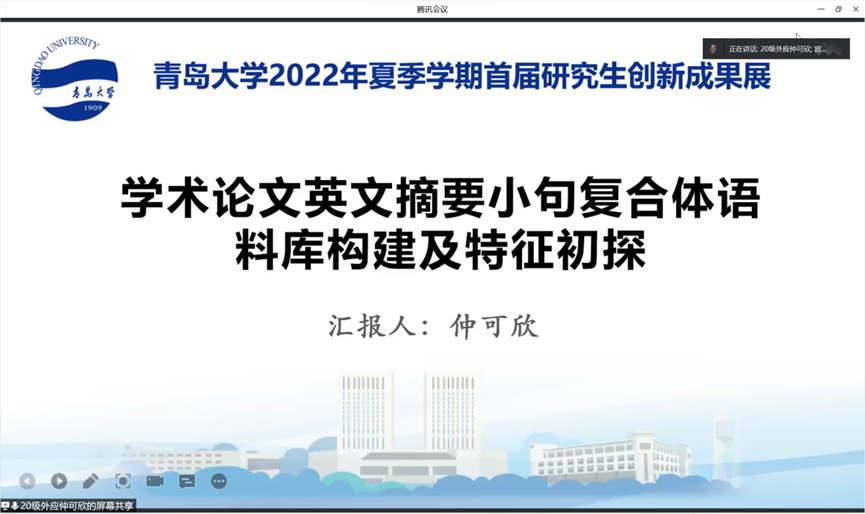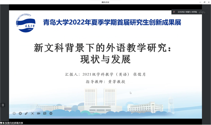 张科蕾副教授认为,本次学术报告会促进了不同学科之间的交流,是各位同学相互学习与借鉴的良好机会,她赞扬语言学方向三位同学撰写的汇报语,思路清晰、分析得当,为各位同学提供了启发与参考。她鼓励各位同学积极参与校内外的讲座与学术报告,提高研究能力。
