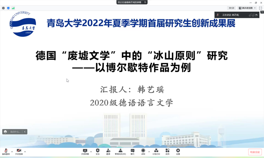 本次2022年夏季学期太阳集团城8722研究生创新成果展为外院学子提供了跨学科交流的良好平台,使员工在分享与研讨中,进一步提高自身素养,努力做到思辨与学术能力“走在前”。