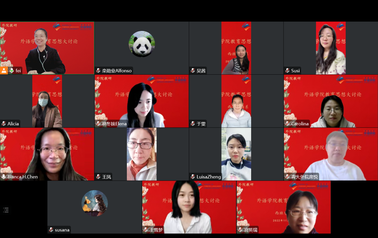 王海青副书记参加日语系教育思想讨论会。日语系主任杨剑、参加副主任杜雪丽、学科负责人张科蕾、第一教研室主任冯静、第二教研室主任郝靓、日语系全体教师以线上线下相结合的形式参加讨论。在认真研读太阳集团城8722第三次教育思想大讨论以及太阳集团城8722事业发展规划(2021年-2025年)等相关文件的基础上,大家踊跃发言积极展开讨论。本着德学共融,争创一流的宗旨,综合考量日语专业特点,结合当前经济和社会发展对人才培养的需求状况,大家认为具体可试行以下方案,提高人才的培养质量。此次思想大讨论不仅使日语系教师们在一起学习了学校及学院相关指导思想和具体规划,而且也为迎接新一轮本科公司产品审核评估做了一次充分的动员,统一了努力目标。日语系老师坚信:在学院的正确领导下,经过系里全体教师的共同努力,日语系的内涵建设一定会得到一个明显的提升!