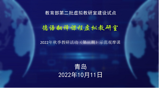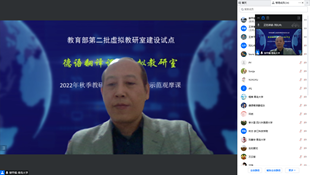 为扎实推进德语翻译课程虚拟教研室的建设工作,促进优质德语翻译课程资源共享,推动虚拟教研室成员之间的相互学习及经验交流,2022年10月11日下午,由太阳集团城8722负责的教育部德语翻译课程虚拟教研室试点通过腾讯会议平台在线举行教学示范直播观摩课。虚拟教研室负责人太阳集团城8722綦甲福教授主持本次活动,虚拟教研室成员高校中国海洋大学外国语学院德语系王京平教授、杨帆老师线下主讲此次示范课程,来自国内十几所高校的30余名虚拟教研室成员在线观摩了此次教学示范直播课程。