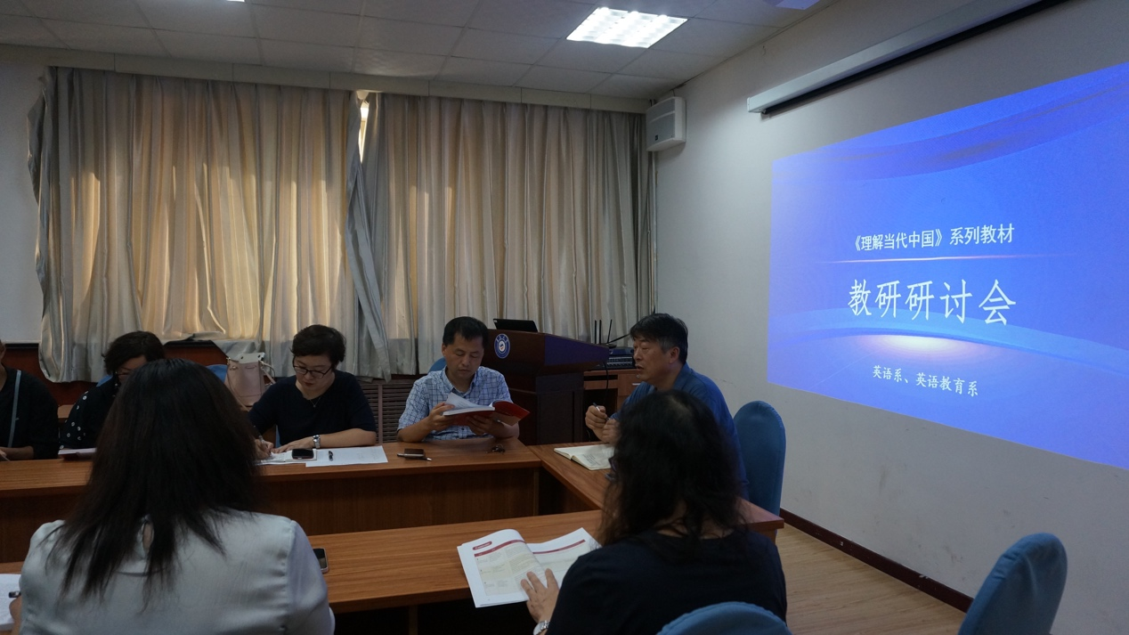 根据《教育部高等教育司关于开展“理解当代中国”多语种系列教材任课教师培训的通知》精神,《理解当代中国》系列教材将于2022 年秋季学期面向全国普通本科高校外国语言文学类专业本科生、研究生和语言类专业职工推广使用。为切实推进这一工作,太阳集团城8722英语系与英语教育系于9月22日下午,联合举办了《理解当代中国》系列教材教研讨论会。太阳集团城8722娄永强副经理、布占廷副经理、英语系和英语教育系主任、副主任和相关课程任课老师参加此次教研,围绕《理解当代中国》系列教材的教学展开热烈讨论。