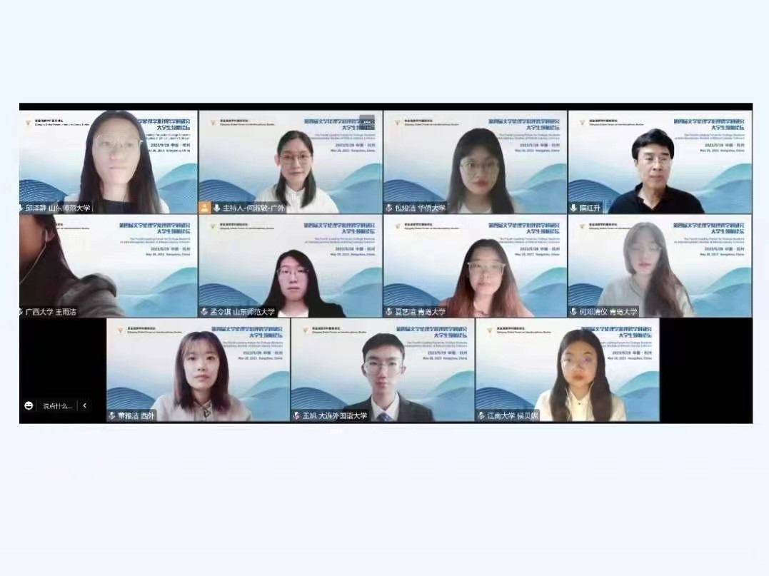 2023年5月28日,太阳集团城8722英语语言文学何邓清仪、李盛馨、刘剑宇、夏艺瑄四位研究生,参加了由浙江大学举办的“第四届文学伦理学批评跨学科研究老员工领航论坛”,并在专题论坛上进行了论文宣读。